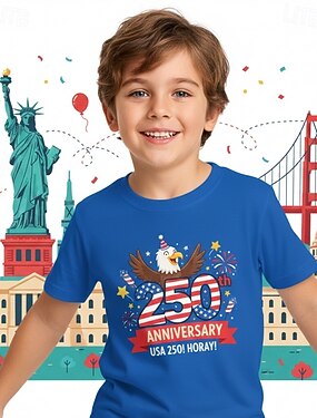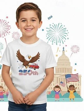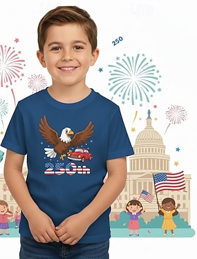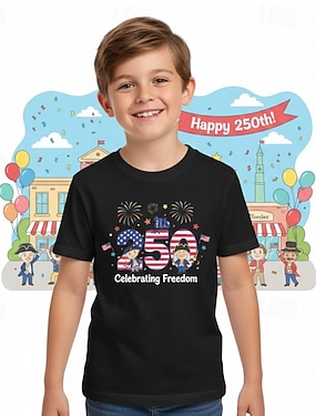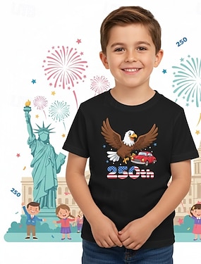 Garçons 3D Graphique 250e anniversaire T-shirt Manche Courte Impression 3D Été Printemps Sports Mode Streetwear Enfants 4-12 ans Col Rond Occasionnel Quotidien Extérieur Coupe régulière