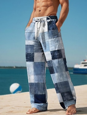 Homme Pantalon pantalon été Pantalon de plage Pantalon bohème Poche Cordon Taille elastique Imprimés Photos Confort Respirable Casual du quotidien Vacances Vêtement de rue Design bleu marine Bleu