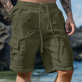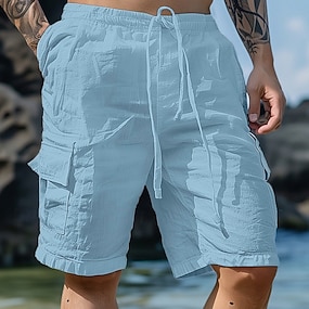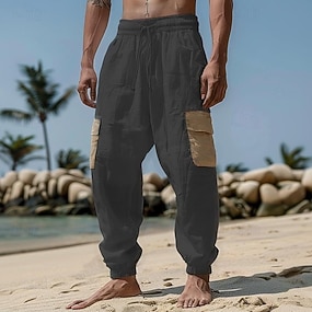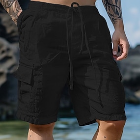 Homme Pantalon Cargo Pantalon pantalon été Pantalon de plage Cordon Taille elastique Multi poche Plein Confort Respirable Extérieur du quotidien Sortie Mode Décontractées Noir Blanche