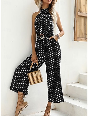 Femmes Normal Combinaison Actif À pois Sans manches Jambe large Col Halter Avec Poches Imprimé Quotidien Vacances Coupe Ample Noir Vin bleu marine Été
