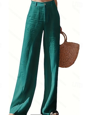 Femmes Faux coton lin Pantalon d'été Pantalon palazzo Mode Streetwear Confort Longueur complète Taille haute Uni Avec Poches Confortable Extérieur Rue Tenue quotidienne Sortir Noir Blanche Cyan Été