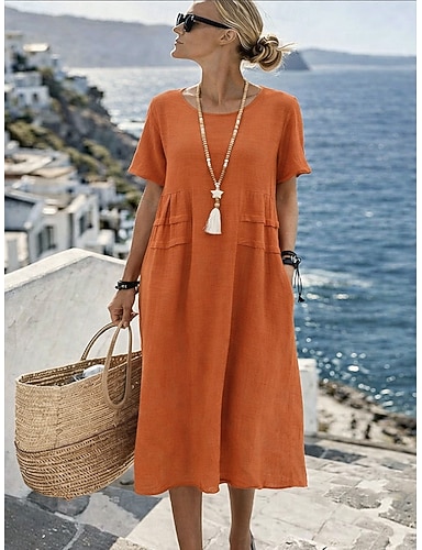 Femmes Robe Midi Robe fourreau Robe d'été Occasionnel Quotidien Coupe Ample Uni Manche Courte Col ras du cou Orange Été Printemps Automne