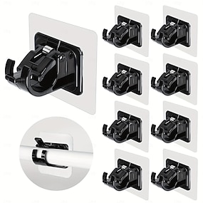 Supports de tringle à rideau sans perçage, 16 pièces, crochets en plastique autocollants, support mural universel pour salle de bain, cuisine, maison et hôtel