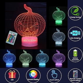 3d citrouille veilleuse illusion lampe halloween cadeau décoration pour enfants 16 couleurs avec télécommande pour enfants chambre avec tactile 3d illusion veilleuse noël& cadeaux sur le thème