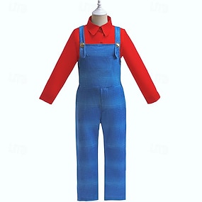 Super Frères Plombier Costume Combinaison Cosplay Cosplay de Film for Garçons Enfant Carnaval Performance Soirée