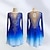 Robe de Patinage Artistique Femme Fille Patinage Robes Bleu + Bleu ciel Trou de pouce Teinture Halo Maille Spandex Elastique Entraînement Professionnel Compétition Tenue de Patinage Chaud Classique