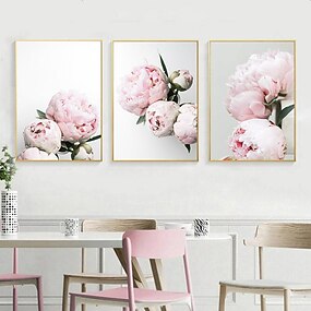 3 panneaux pivoine/fleur rose art mural tenture murale cadeau décoration de la maison toile roulée pas de cadre sans cadre non étiré