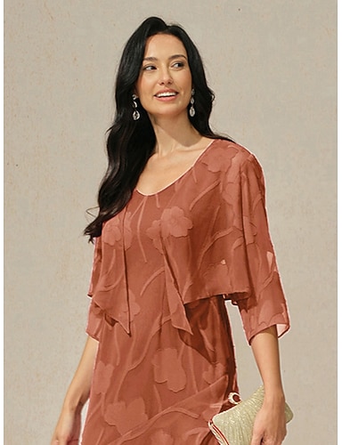 Femmes Haussements d'épaules Fleuri Élégant ancien Manche 3/4 Col en V Soirée robe demoiselle d honneur Tenue de soirée Vin Automne Hiver