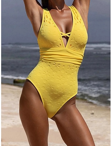 Femmes Maillots de Bain Une Pièce Bikini Maillot de bain Découpé Vacances Tenues de plage Couleur Unie Col en V Sans manches Maillots de bain