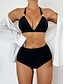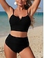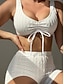 Bikini pour femmes 2 pièces maillot de bain froncé avec armature short slim dos nu vacances plage uni en V sans manches