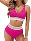 Maillot de bain bikini femme 2 pièces ruché soutien-gorge dos nu vacances plage couleur unie col en V sans manches
