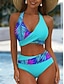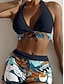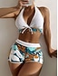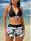 Femmes Maillots de Bain Bikini 2 pièces Shorts Maillot de bain Dos nu Vacances Tenues de plage Graphique Col Halter Sans manches Maillots de bain