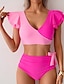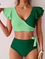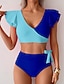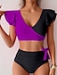 Femmes Maillots de Bain 2 pièces Coquin Maillot de bain Froncé Patchwork Dos nu Vacances Tenues de plage Bloc de Couleur Col en V Sans manches Maillots de bain