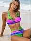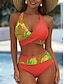 Femme Normal Maillots de Bain Bikinis 2 pièces Slip Brésilien Maillot de bain Dos Nu 2 Pièces Faire monter Sexy Imprimé Vacances mode A Ombre Feuille Col en V Sans Manches Maillots de bain