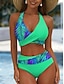 Bikini Femme 2 Pièces Maillot de Bain Taille Haute Dos Nu Vacances Plage Graphique Florale Col V Sans Manches