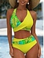 Femmes Maillots de Bain Bikini 2 pièces Taille haute Maillot de bain Taille haute Mince Dos nu Vacances Tenues de plage Tropical Col en V Sans manches Maillots de bain