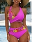 Femmes Maillots de Bain Bikini 2 pièces Slips Maillot de bain Mince Dos nu Vacances Tenues de plage Col Halter Sans manches Maillots de bain