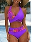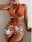 Femmes Maillots de Bain Bikini 2 pièces String Maillot de bain Mince Dos nu Vacances Tenues de plage Fleuri Col Halter Sans manches Maillots de bain