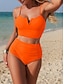 Femme Maillots de Bain Bikinis 2 pièces Slip Brésilien Maillot de bain Dos Nu Taille haute Mince Vacances Tenues de plage Bloc de couleur Dos nu Sans Manches Maillots de bain