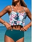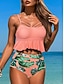 Bikini 2 pièces femme maillot de bain jupe palmier mode vacances graphique floral décolleté en V sans manches