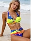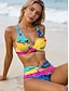 Bikini pour femmes 2 pièces maillot de bain avec armature culottes boho taille basse dos nu vacances plage graphique floral col en V sans manches