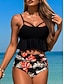 Femmes Maillots de Bain Tankini 2 pièces Shorts Maillot de bain Mince Dos nu Vacances Tenues de plage Fleuri Col en V Sans manches Maillots de bain