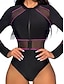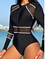 Femmes Maillots de Bain Une Pièce Bikini Coquin Maillot de bain Zip Up Patchwork Vacances Tenues de plage Bloc de Couleur Col rond manche longue Maillots de bain