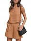 Femmes Ensembles en coton et lin Gilet en coton et lin Ensembles de Shorts Sans manches Col en V Couleur Unie Élégant Mode Streetwear Occasionnel Quotidien Extérieur Orange Été Coupe régulière