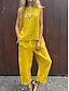 Femmes Coton mélangé Ensembles inspirés du lin Ensembles deux pièces Sans manches Col ras du cou Couleur Unie Affligé Noir Blanche Jaune Été Coupe Ample