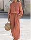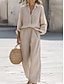 Ensemble Femme en Coton Lin 2 Pièces Coton Lin Élégant Mode Streetwear Chemise Blouse Manches Courtes Col Chemise Couleur Unie Extérieur Travail Décontracté Blanc Rose Vert Armée Été Coupe Régulière