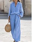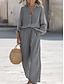 Femmes Mode Quotidien Ensembles deux pièces Ensembles de Pantalons manche longue Col de chemise Rayé Imprimé Bureau Noir Bleu Gris Été Coupe régulière