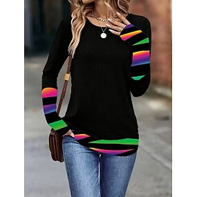 Femmes T-shirt Imprimé Graphique Géométrique Élégant Occasionnel manche longue Col ras du cou Hauts Réguliers Quotidien Week-end Bleu Blanche Rose Claire Violet Vert Printemps Automne Hiver