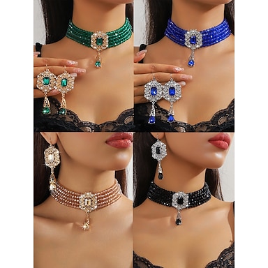 Ensemble de bijoux en strass pour femmes, 4 pièces : collier scintillant, boucles d'oreilles, bracelet et bague pour danse de salon, cocktail et événements formels