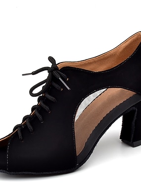 chaussures de danse à lacets noires pour femmes avec empiècements en maille et design à bout ouvert - chaussures de salon et de salsa confortables à talons