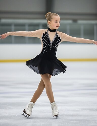 Robe de patinage artistique Femmes Patinage Robe Noir Patchwork Dos Nu Élastique Entraînement Compétition Tenue de Patinage Classique cristal pailleté Sans manches manche longue Patinage sur glace