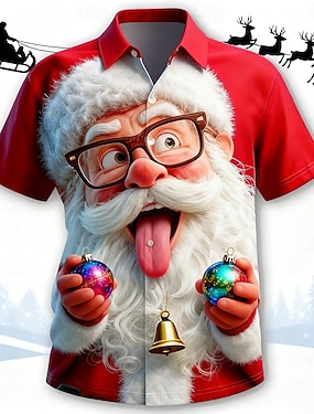 Noël Homme Père Noël Drôle T-shirt manche longue T-shirt Impression 3D Col ras du cou Chemise Mode Basique 3D Occasionnel Quotidien Rue Rouge 3 Rouge rouge 2 Été Printemps Vêtement Tenue S M L XL XXL