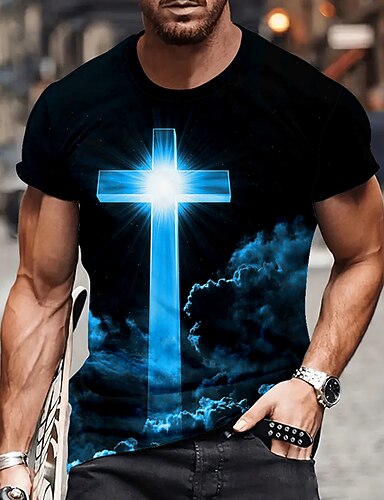T-shirt à manches courtes Bible pour hommes impression 3D col rond décontracté violet profond gris chiné noir vêtements été normaux
