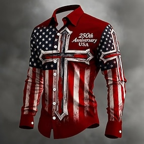 Homme 4 juillet, 250e anniversaire des États-Unis Croix Drapeau américain Chemise Chemise Boutonnée manche longue Patriotique Fête Décontracté Quotidien Printemps Automne Col Rabattu Impression 3D