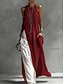 Robe Maxi Femme En Lin Comme Robe Tunique Décontractée Quotidienne Coupe Ample Imprimé Graphique Géométrique Manches Longues Col V Bleu Orange Vert Rose Pink Été Printemps