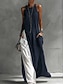 Robe maxi femme en lin comme respirant léger robe shift robe d'été vacances décontractée boho quotidienne plage coupe ample graphique géométrique à manches 3/4 col rond bleu été printemps automne