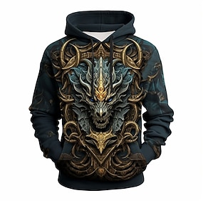 Homme Sweat à capuche Bleu À capuche Dragon Impression 3D Frais Automne Hiver Vêtement Tenue Pulls Capuche Pulls molletonnés manche longue