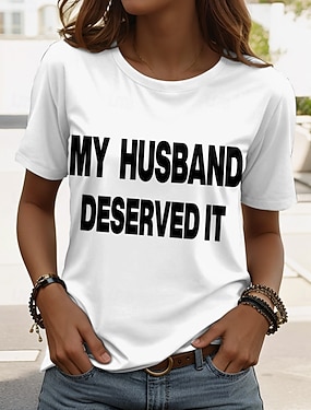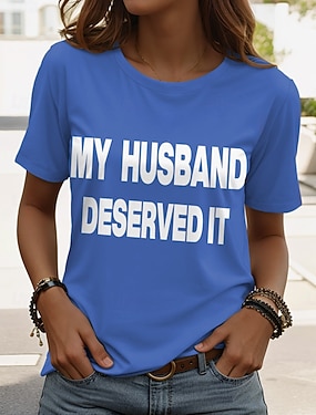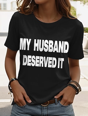 T-shirt femme avec citations humoristiques, imprimé graphique, style classique et décontracté, manches courtes, col en V, manches longues, idéal pour le quotidien, les sorties et le week-end.