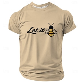 T-shirt graphique lettre pour homme Let It Bee jeu de mots à manches courtes