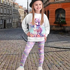 Fille 3D Graphic Galaxie Licorne T-shirt & Pantalon Ensemble robe Ensemble de Vêtements manche longue 3D effet Printemps Automne Hiver Actif Mode du quotidien Enfants 3-12 ans Extérieur Vacances