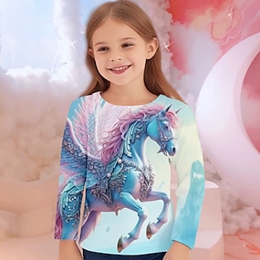 Fille 3D Animal Cheval Sweatshirt manche longue 3D effet Automne Hiver Mode Vêtement de rue Adorable Polyester Enfants 3-12 ans Extérieur Casual du quotidien Standard