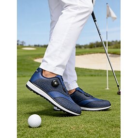 Chaussures de golf bleu clair pour hommes avec système de cadran réglable, design respirant, chaussures de golf d'extérieur sportives