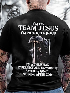 T-shirt graphique de foi chrétienne pour hommes Team Jésus - Pas religieux Sauvé par la grâce T-shirt à manches courtes