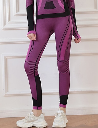 Femmes Pantalons de randonnée Pantalon thermique Patchwork Hiver Automne Extérieur Coupe régulière Chaleur Thermique Bas Noir Rose Tennis Sports d'Hiver Course S M L