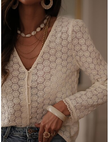 Femmes Chemise popover Chemise Décontractée Chemisier Broderie Boutons Fleuri Élégant Occasionnel manche longue Col en V Hauts Réguliers Quotidien Extérieur Fête Blanche Printemps Automne Hiver
