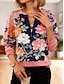 Femmes Sweatshirt Pull Sweats zippés Fleuri ancien Occasionnel manche longue Col ras du cou Hauts Réguliers Rue Tenue Quotidienne Occasionnel Fermeture éclair Imprimé bleu marine Printemps Automne